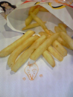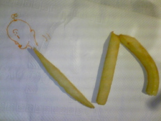 ポテトで悪戯する人久しぶりに見たよ(ぁ)マックの紙にも悪戯描きしてたしww